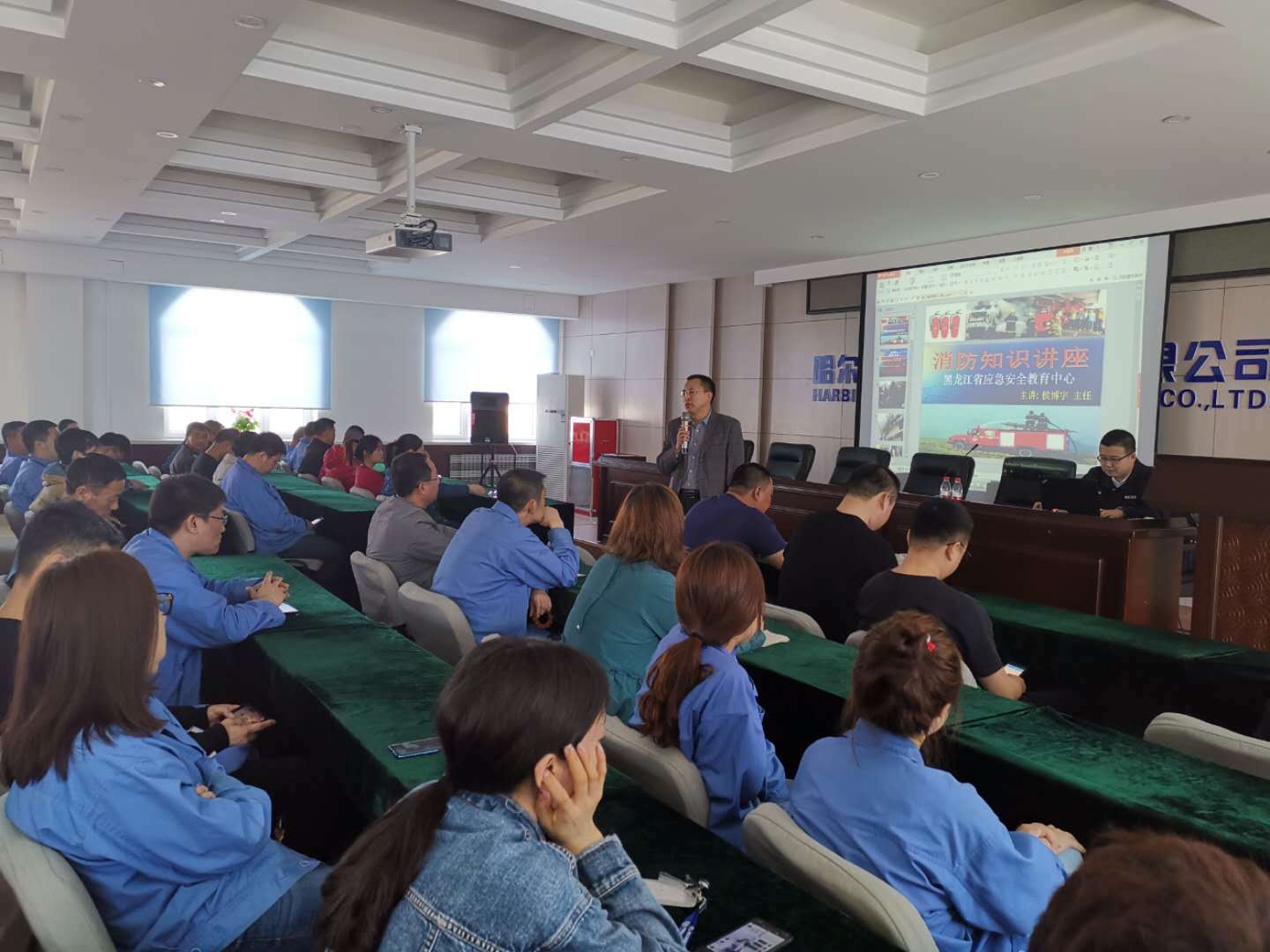 我公司和哈尔滨市消防宣传中心密切合作,邀请侯博宇主任授课,结合消防安全警示视频中的真实案例,讲述了消防安全的重要性和严峻性,火灾预防与扑救措施,并实际操作演示如何使用灭火器材,使全体员工初步掌握火灾自救和逃生知识。