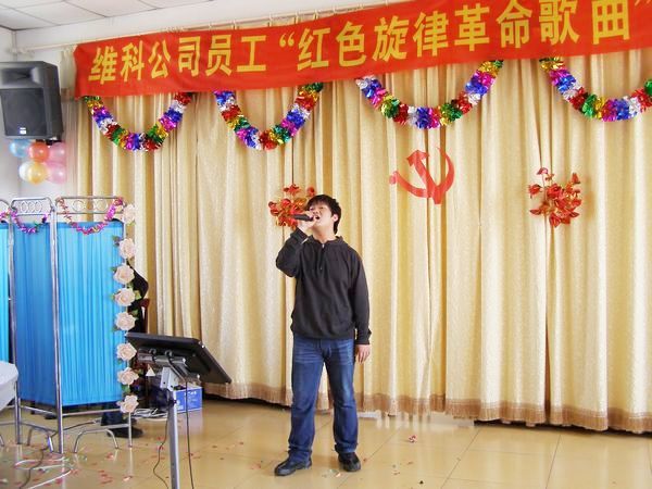 4月29日12时30分,维科公司职工食堂二楼党徽高挂,红歌唱响,为了庆祝中国共产党成立90周年,引导各支部所属职工以昂扬向上的精神风貌和更加出色的工作成绩向党献礼,由维科公司党总支主办,以歌唱党,歌唱祖国,唱响“红色旋律”革命歌曲为主题的大型卡拉OK独唱大赛正式拉开帷幕。