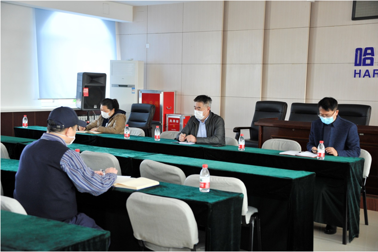 2020年4月1日,哈尔滨市平房区贾玉国副区长、发改局陈立科副局长、工信局方帅主任一行来维科公司视察,就新冠肺炎疫情期间企业复工复产情况及复工复产后存在的困难进行调研。公司总裁冯力、总经理冯建民、副总经理熊永忠、财务总监孙长河、质量总监刘景利、生产总监郭兴福、行政部部长崔永镇参加调研。