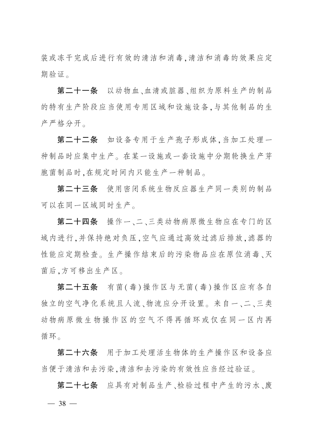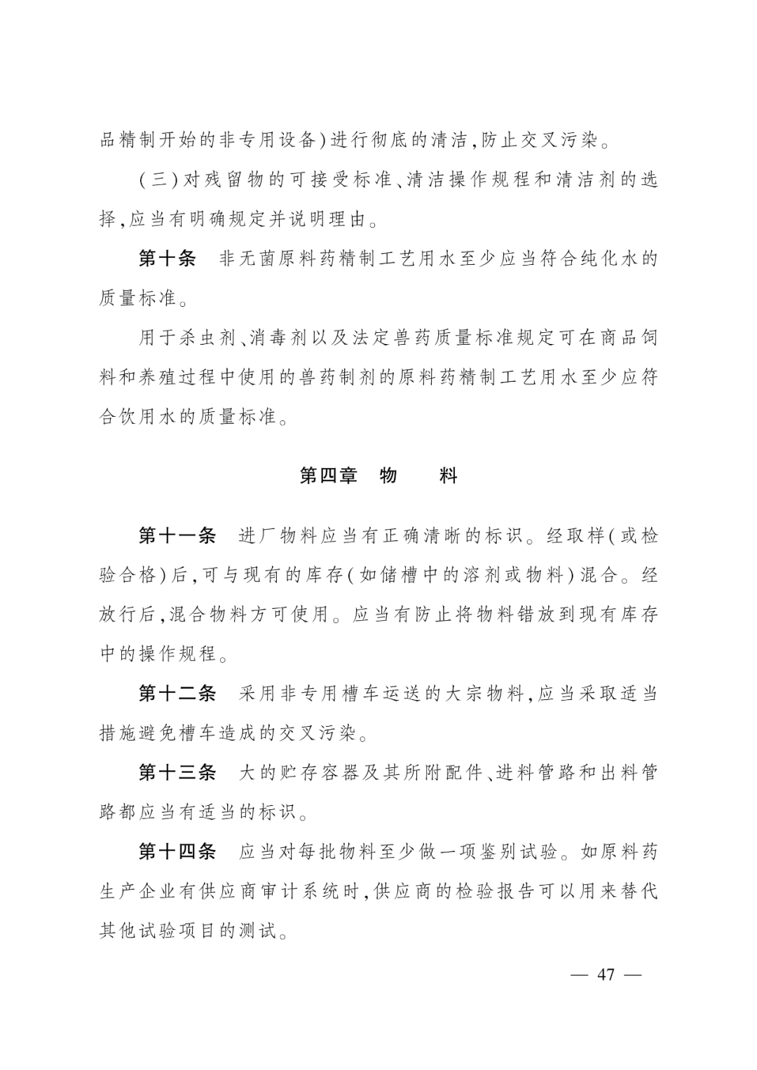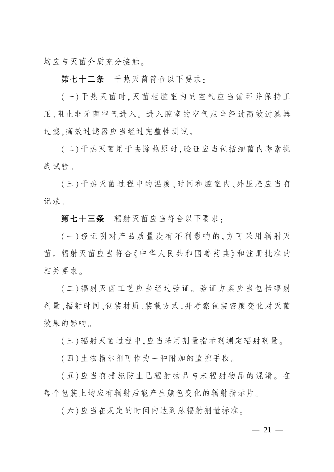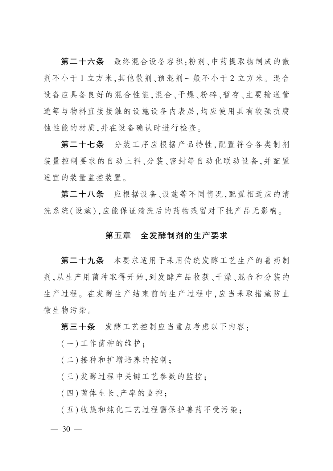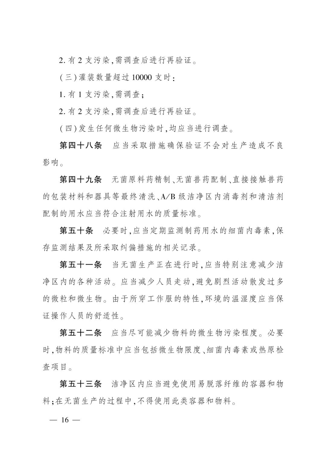 根据《兽药生产质量管理规范(2020年修订)》第二百八十五条规定,现发布无菌兽药、非无菌兽药、兽用生物制品、原料药、中药制剂等5类兽药生产质量管理的特殊要求,作为《兽药生产质量管理规范(2020年修订)》配套文件,自2020年6月1日起施行。