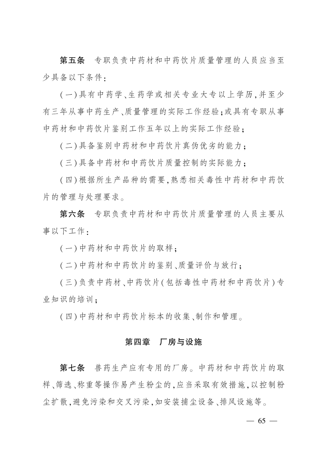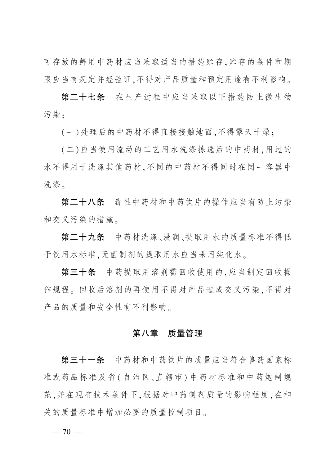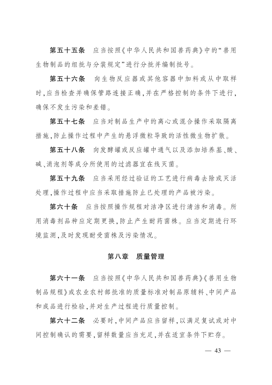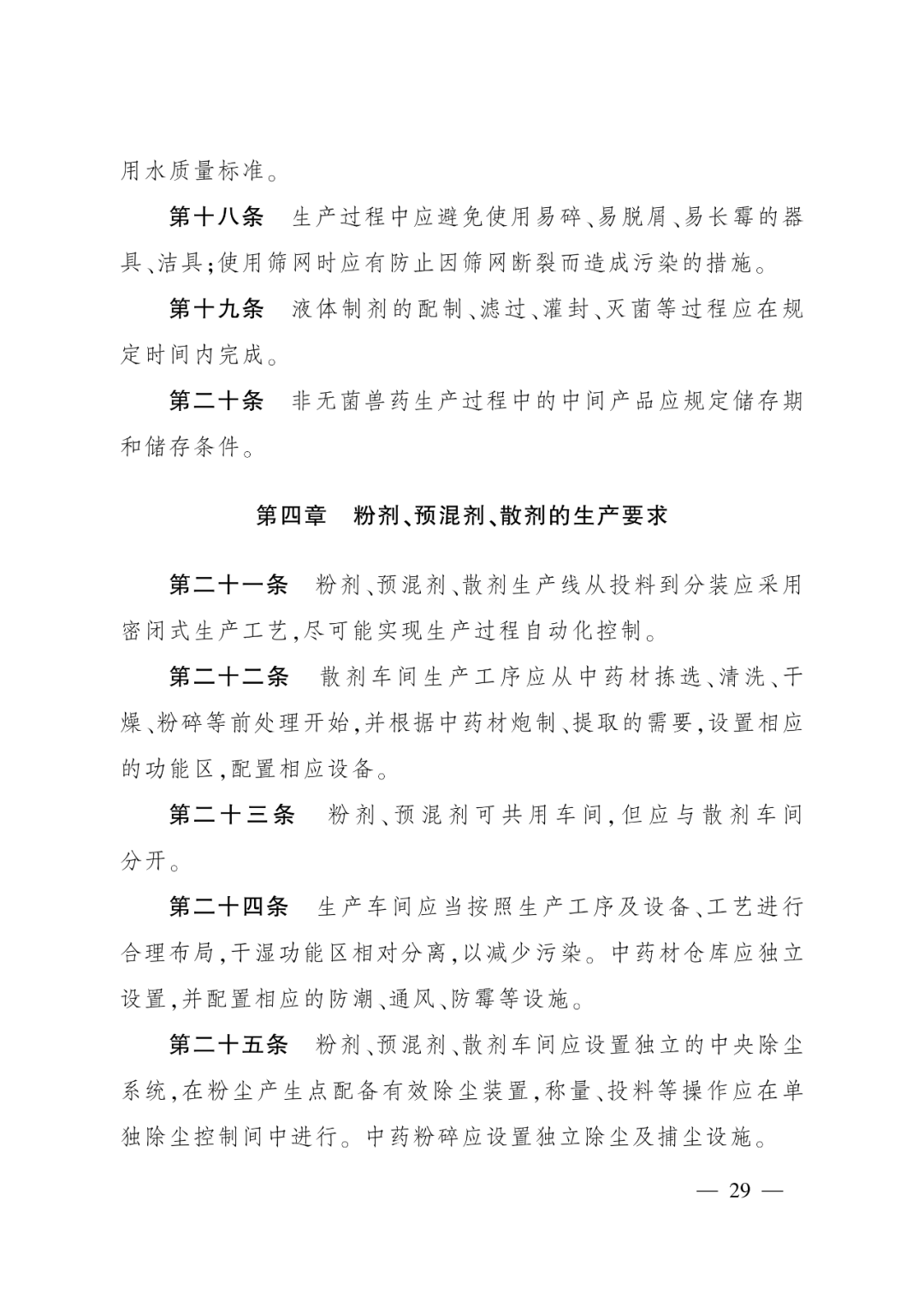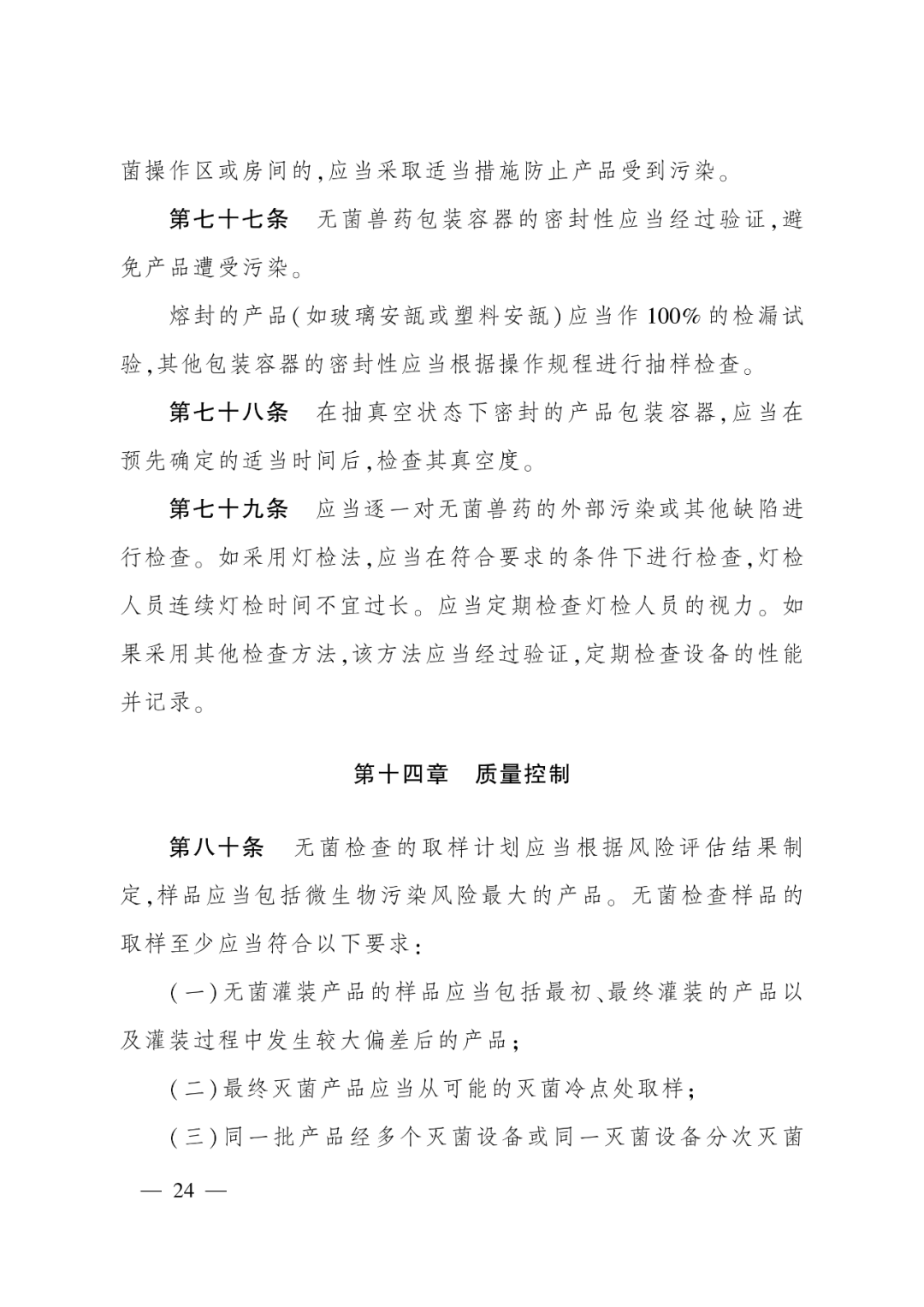 根据《兽药生产质量管理规范(2020年修订)》第二百八十五条规定,现发布无菌兽药、非无菌兽药、兽用生物制品、原料药、中药制剂等5类兽药生产质量管理的特殊要求,作为《兽药生产质量管理规范(2020年修订)》配套文件,自2020年6月1日起施行。