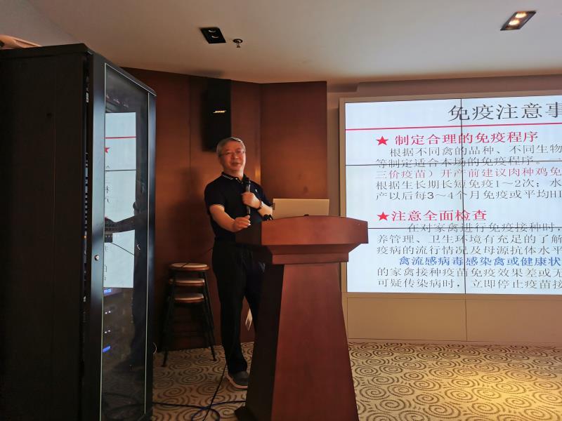 会上,田国彬研究员就我国禽流感流行现状与综合防控措施作了精彩讲座,田国彬表示,当前我国流行的H5亚型禽流感病毒相对稳定,变异程度不大,现有的Re-11株及Re-12株疫苗完全能够提供保护;H7亚型禽流感病毒出现变异,原有Re2株疫苗已经不能提供完全保护,需要更换Re3株疫苗。所以,此次高致病性禽流感疫苗更换毒株只就H7N9亚型禽流感毒株进行更换,以Re3株取代Re2株,H5亚型延用Re-11株和Re-12株。建议,广大养殖朋友及时选用新疫苗对禽群进行免疫。H9亚型禽流感病毒相较于H5、H7亚型禽流感分布更广、流行更多,Re-9株疫苗对国内流行毒株能够提供有效保护。