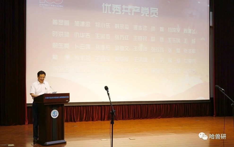 6月29日下午,中国农业科学院哈尔滨兽医研究所400余名党员干部齐聚一堂,表彰先优,歌颂党恩,隆重庆祝中国共产党成立100周年。