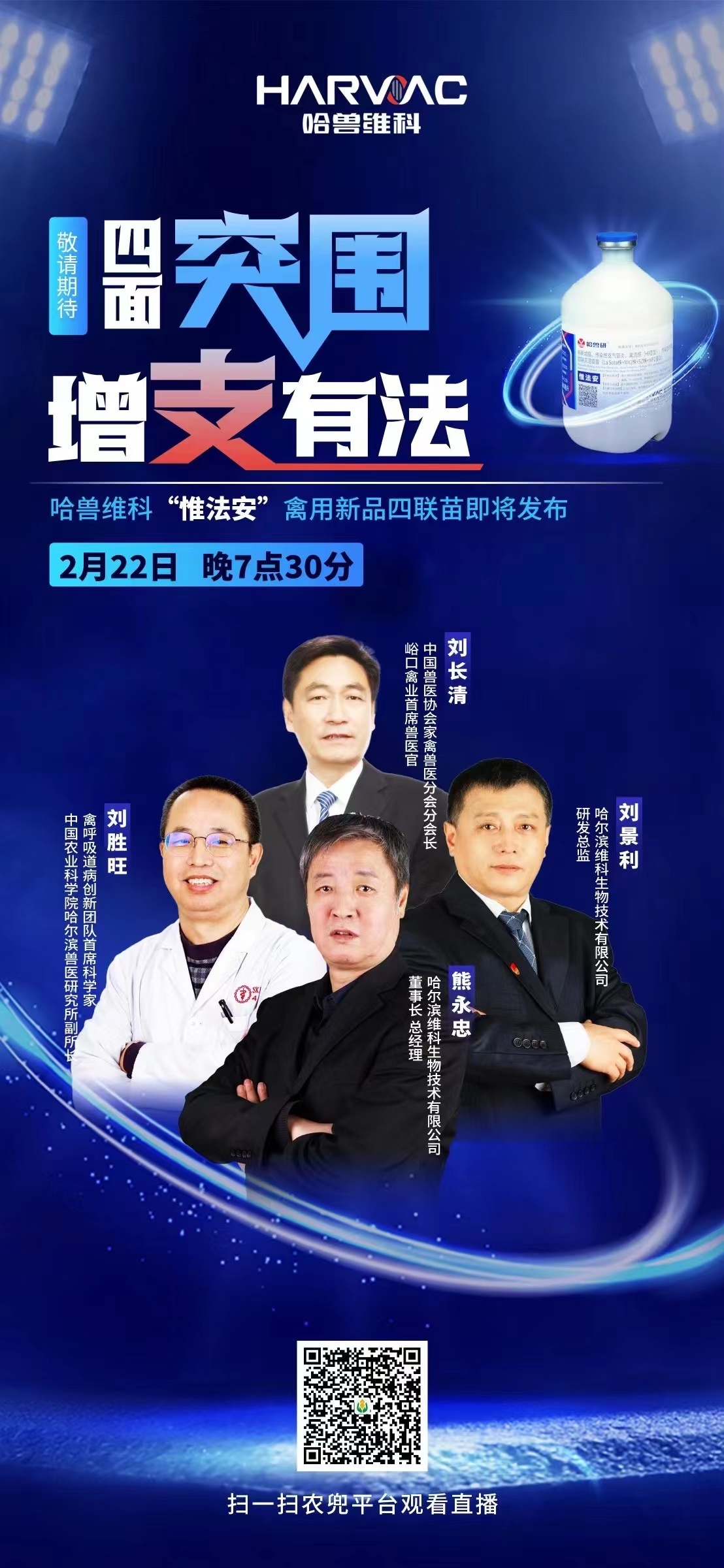 【一针四防 增支有法】 2月22日19:30,哈维科新支流法四联苗“惟法安”上市发布会,敬请关注