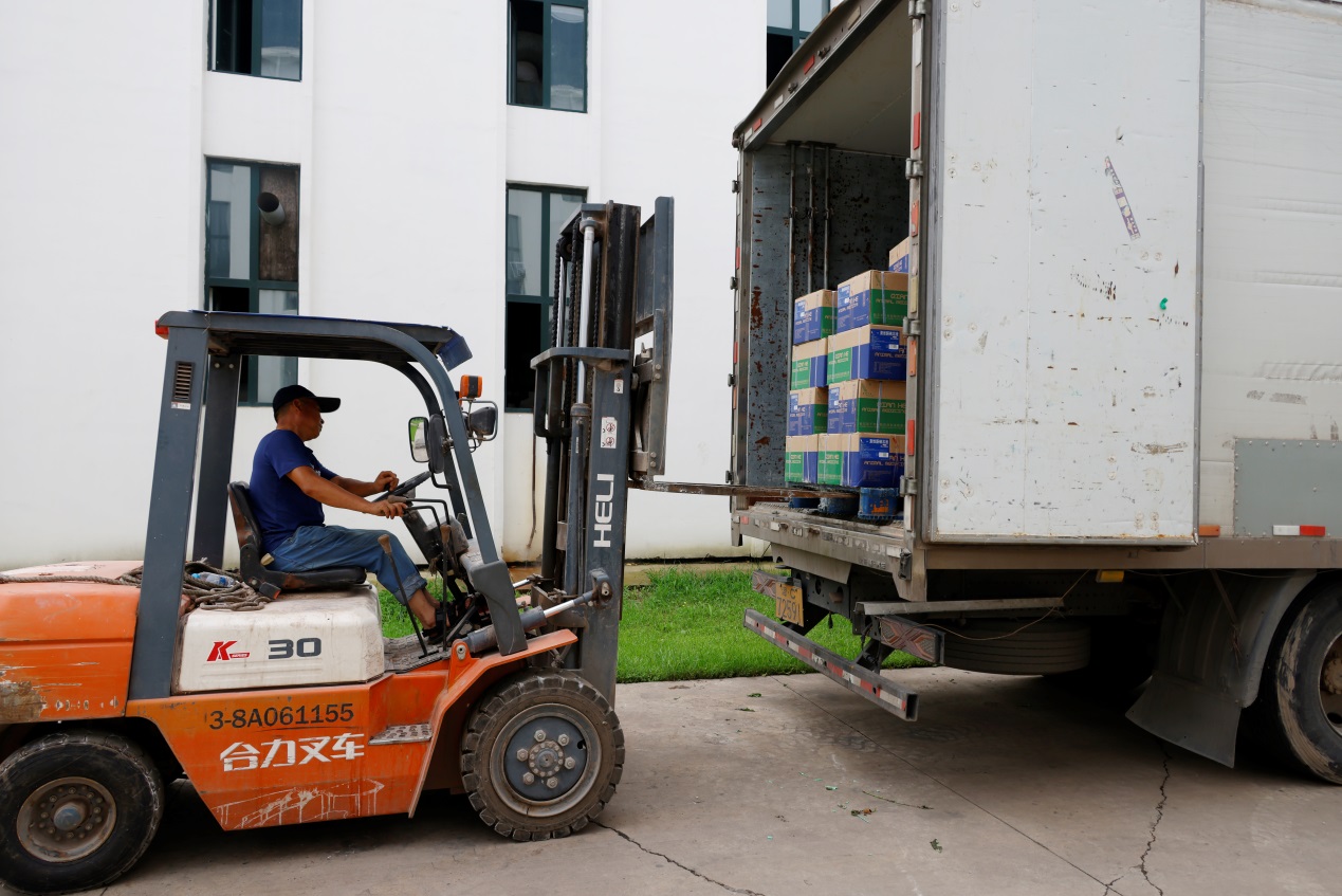 抗洪救灾物资正在装车中